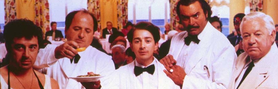 Paolo Villaggio come egoista capo cameriere con un luminoso(?) passato dietro alle spalle. Diego Abatantuono che giocava a pallone e si è ritrovato a servire ai tavoli di un ristorantone in decadenza. Antonio Catania con tutti i tic e le manie dei grandi cuochi prepotenti e superbi. Marco Messeri che era tanto bravo la fisarmonica quanto incapace di ritagliarsi un posto nel mondo. Enrico Salimbeni è il nipote di Villaggio, timido ed ancora puro.